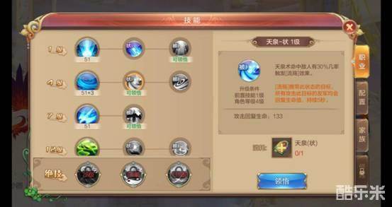 天泉-状:会对敌人施加DEBUFF,攻击带DEBUFF敌人的友军会回血,有条件可以满,毕竟你是毒奶,奶量不足的情况下,这个还是挺好用的。