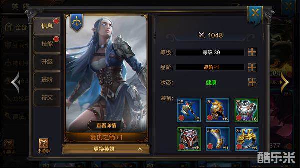 2、 进阶:英雄的升阶可以提升英雄的属性,对英雄的成长帮助非常的大。英雄的进阶需要消耗英雄碎片,10个英雄的碎片可让英雄品阶+1。