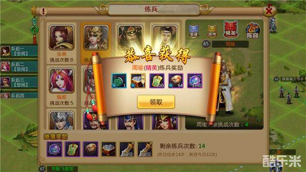 简单来说,练兵可以通过消耗高级讨伐令来征讨指定将领。每天有20次练兵机会,每个将领均可用练兵征讨5次。而且如果你练兵次数没用完,剩下的次数还会按照一定的比例累计到下一天(上限为20次)。