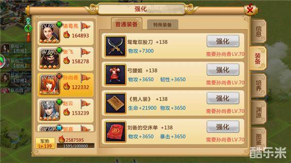 香香培养,尽量将输出最大化,优先考虑破击,暴击,物攻,因为其装备特性,破击和暴击属性加的比较少,而输出基本都是敌方前排,格挡几率高,所以破击算是收益最高的。