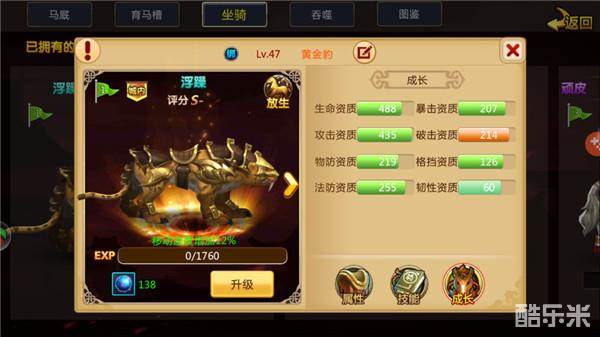 坐骑提供的数值也与角色资质不同,无论是从实际属性上来看还是资质(资质只是用数据表示高低,并不代表真实成长),坐骑机制都是一个很好的提供属性的机制,其生命属性仍然极高,而特殊属性与基础属性的比值做到了基本与坐骑资质比值一致,也就是说,同样与角色的完美资质对比,我们得出的结论是坐骑资质:特殊属性≥生命>基础属性。