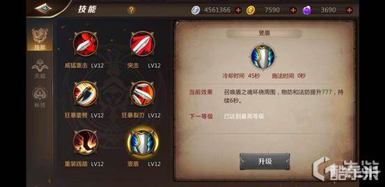 这层推荐点满第一个和第二个天赋,第一个天赋进一步增强了我们的最强技能竖盾,而第二个也可以在我们使用秘技以后提高我们自身的双防,实在是两全其美。