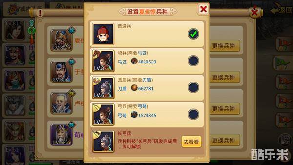 之后我们就可以在队伍里面给各个武将进行更换兵种,不过前提是材料得足够,比如主公想改为弓兵的话,如果主公的战力是60万,那么就要消耗60支弓箭,后续补兵时同样需要消耗兵数相应的弓箭。兵种间也有相互克制的关系,因此一个队伍里最好有不同的兵种哦~