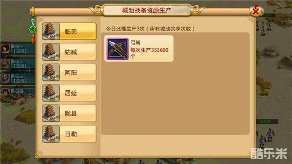 另外我们攻打城池后,每日有3次机会在城池里生产材料,记得别忘记这种免费的好事哦。