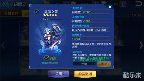 而且海洋之琴进化之后会得到一个非常霸道的冰柱技能,这个技能在使用可以给敌人打击敌人三次并且造车2937点伤害,其实这点伤害玩家肯定是不放在眼里的,这个技能的重点是在于可以用百分之二十五的几率让敌人减速一秒,要知道JJC中一秒都是决定生死的,玩家可以利用这减速的一秒给敌人造成毁灭性的攻击,所以这个宠物在JJC中还是非常实用的,目前玩家想要获取这个宠物还是非常难得,因为只有在活动的时候才能入手这个宠物。