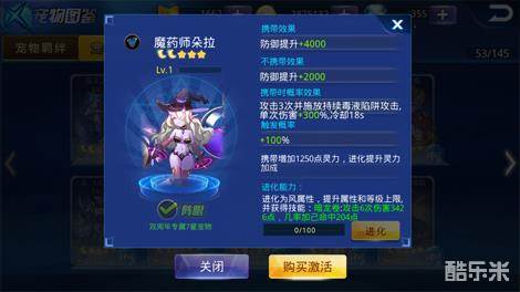 魔药师朵拉这个宠物的主要属性是防御,在副本和JJC中都可以给玩家带来防御属性的加成,魔药师朵拉携带效果是攻击3次并施放持续性毒液陷阱,攻击单次伤害为百分之三百,这个技能使用困难的原因就在于陷阱不一定能攻击到在移动中的敌人,玩家想要拿到这个宠物就必须要时刻注意系统中的活动,因为这个宠物暂时没有其他的售卖方式,玩家只能从活动中获取。