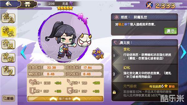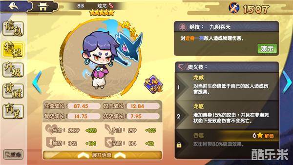 更新后的2奥义,其攻击力增加幅度由12%上调到15%,3奥义的吸血效果注明了80%。
