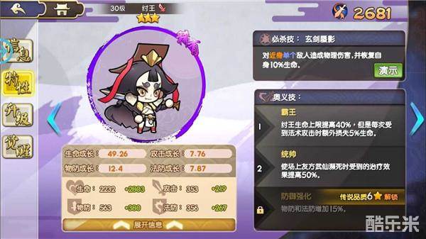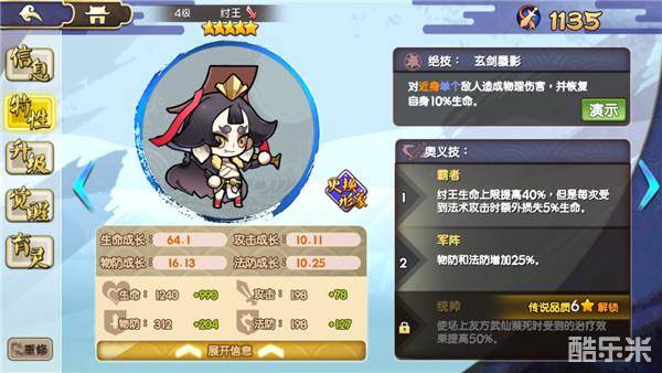 分析:原来的6星奥义变成了2奥义,而且效果从15%大幅提升到25%,大大提升自己的抗打能力。而且纣王自身的奥义还能提升40%生命上限,这次的增强不知道能否让他一跃成为主T的位置呢?