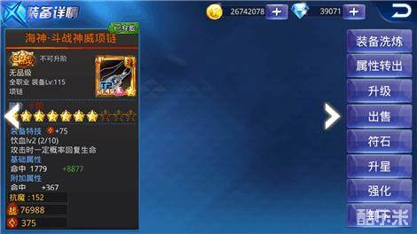 斗战级装备作为曾经的最强装备,在其属性上自然有自己的优势!我们看到的斗战级装备现在已经改成【海神·斗战神威战衣】,特技、属性、战力加成都是和更新前一样。虽然斗战级装备多了抗魔值属性,但是基本上没有变化!