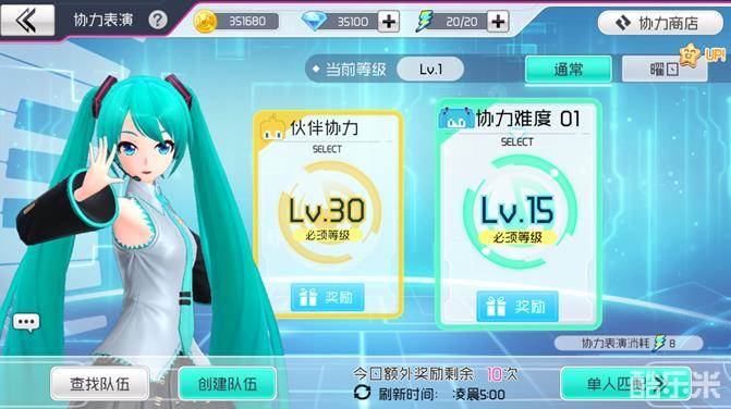1) 初音未来15级时开启协力表演,在这里可以和众多的其他玩家,协力进行游戏。