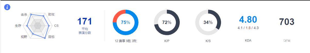 目前,Fnatic以9胜3负的战绩领跑EU LCS,作为首发中单的Caps出战了全部12局比赛,场均可取得4.1次击杀、1.8次死亡和4.3次助攻,场均KDA4.80,击杀参与度72%