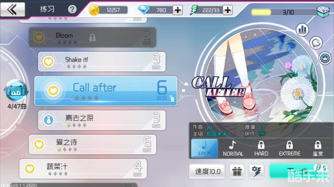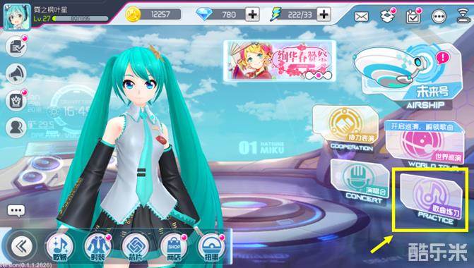 4) 初音未来和伙伴的歌曲都收录在练习模式中,通过界面最右边的切换按钮可以查看。