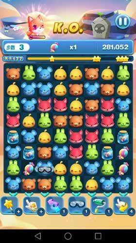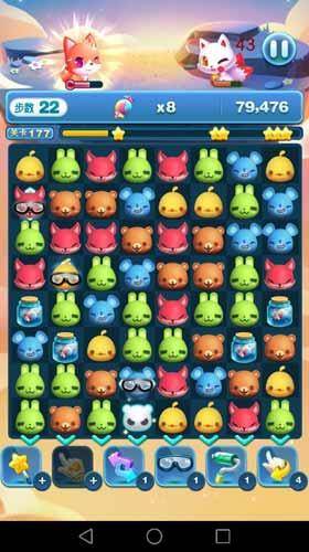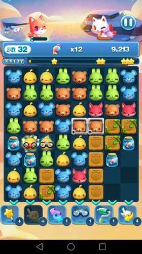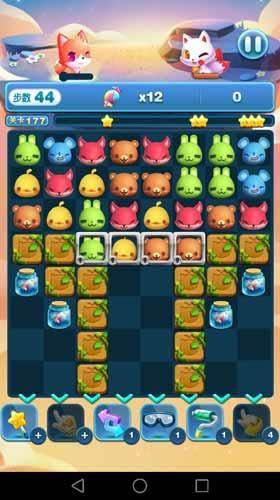 天天爱消除第177关,本关还是糖果收集关卡,本关的地图也相对比较简单,动物和糖果罐分为上下两部分排布,泾渭分明,糖果收集数量也很多,我们首先需要做的就是打通上下部分之间的联系,同时不断的制造出叠加消除,每次的叠加消除都可以让我们一次得到数个糖果同时得到大量分数,几次这样的操作就可以完成我们的目标并高分通关了。