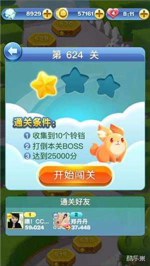 此关卡的主要任务就是收集十个铃铛,也就是将图中挂有铃铛的同色棋子收集成功就可以了,首先从地形来看这一关的地形虽然不是特别完整,但好在没有什么镂空的地方,棋子分布的也还算集中;只是说这一关的障碍很多,我们要做的就是要突破这重重的障碍。这里一共有二十五步供我们消除但是障碍非常的多铃铛的数量也不少,所以我们在消除的时候还是要谨慎的对待,每一步千万不要浪费。另外,出战的宠物战斗力必须在7000以上,否则怪兽是打不死的。