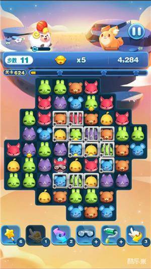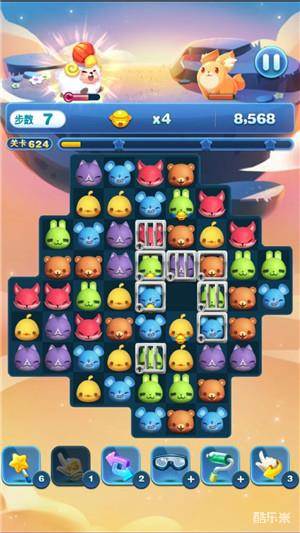 当我们把关口突破开来剩下的就容易多了,就只需要选择挂有铃铛的旗子来进行消除就可以,而且越往后你就会发现棋子越来越集中,我们制造出旋风小丑或者是目镜射线这类特殊道具的概率也会越来越大,最后我们只要使用这些特殊道具铃铛棋子一共是十个,一切顺利的话加上特殊道具的使用一共可能需要20步最后大概还剩下五步用作缓冲使用。就能很快的把铃铛棋子收集成功了。总体来说这一关主要还是要依靠特殊道具的力量才能闯关成功!