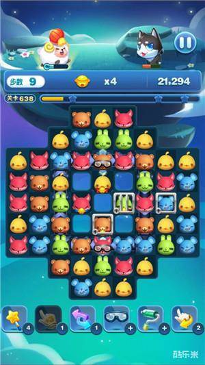 这一关卡的主要任务就是收集铃铛,也就是将挂有铃铛的同色棋子收集成功就可以了,那么从图中来看,这四个铃铛都位于正中间的位置,而且都是独立存在的,并且都被困在框架牢笼之中,所以我们要想要解救它们还是有一定的难度的。首先,我们从地形来分析这一关,这里的地形杂乱无章,并且在正中间的位置还有很多镂空的地方,导致棋子分布的非常零散,这对于我们消除棋子来说,无疑增加了很大的难度。