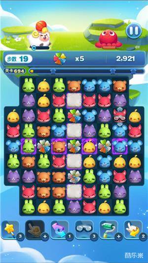 对于收集是四叶花或是五叶花这种任务而言是急不得的,必须具有一定的耐心,而且一定要看准指定的颜色,不然在旁边滑动无用的棋子就是浪费步数了,大概又四五步的样子,我们已经成功的收集到了第一朵五叶花,所以操作起来还是比较简单的。这个时候要注意,虽然任务分不高,但怪物的能量消耗的并不多所以在道具方面我们一定要有所突破才行。收集五叶花的很多时候不需要道具,只是需要滑动棋子,所以也不要忽略道具的作用。这个时候制作出了一个射线,还有十几步,在后面的针对下完成任务,还是没有问题的。