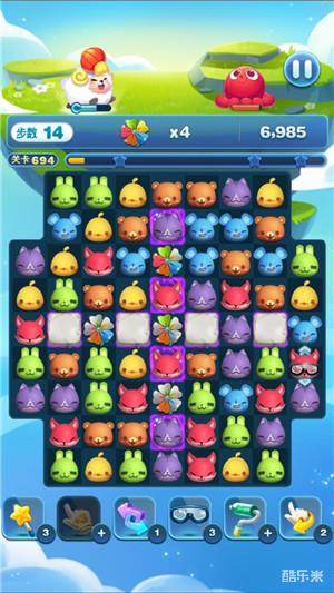 经过上面的简单分析,地图方面我们可以不用考虑,现在在关卡开始之前一定要看清五叶花的指定颜色,在这朵五叶花上并没有紫色,所以我们可以在滑动的时候不要考虑进去就行。由于夹杂了四块这种不可消除的石块,所以在给五叶花染色的时候不免受到很多阻碍,一定要找准时机再下手。大概五六步的样子,我们可以看到其中有四朵花已经被我们染上了部分颜色,接下来只要再继续努力就行,所以机会肯定是有的。如图,我们还在过程中,顺利的制作出了道具,地图比较宽敞,所以道具的制作也不是没有可能的,道具对于我们的任务进程是有一定的帮助的,可以帮助更快的打倒怪物。