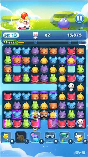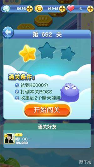 这一关的主要任务就是收集两个晴天娃娃;也就是将晴天娃娃移动到下方箭头所指向的位置就可以了。这一关的地形不是很完整,棋子分布的也很零散,并且障碍很多,所以我们在消除的时候一定要仔细的利用好每一步。