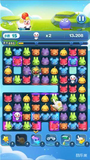 当我们大概移动了六步左右,棋子变的更集中了,这个时候一定要快速地制造出像旋风小丑或者是目镜射线这样的道具出来,这样能帮助我们把娃娃快速的移到下方来。一旦娃娃顺利的到达了下方区域之后一定要注意千万不要让它再次陷入到虫洞里面去,因为一旦陷进去之后就会被虫洞传送到上方去,这样一来就会非常的浪费步数,而且我们再想把它移下来就会很困难了。除此之外,我们还要注意,一旦掉落到了传送带上面再想把它移到箭头的上方位置也会很困难,所以这一关在消除的时候一定要掌握棋子掉落的规律,走错一步就可能要重头开始了。