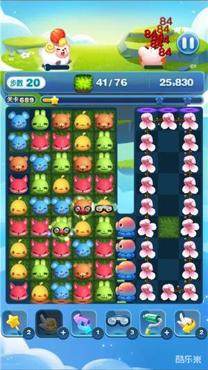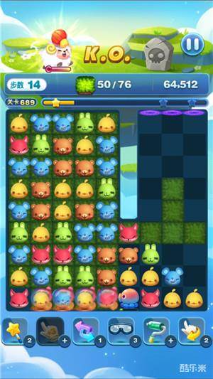 这一关的主要任务就是铺满图中的76块草坪,也就是将图中左边和右边两个区域的所有草坪都铺满成功就可以了,首先这一关的地形还算是比较完整棋子分布的也很集中,所以我们消除起来也比较轻松;只是这一关分为左边和右边两个区域,在它们的中间是由四个大章鱼所隔开的,所以左边区域的草坪相对来讲比较容易铺满,右边区域的则会困难很多。
