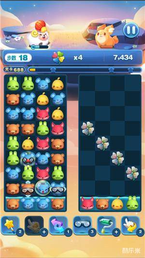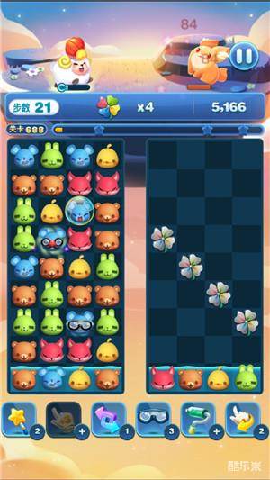 大概两三步的样子,可以看到水泡出现的频率并不是很高,所以抬升水位就比较缓慢了,本身收集四叶花是比较简单的,但是旁边如果没有棋子的话就变成困难的事了。这个时候水位还停留在第一个阶段,关卡遇到了瓶颈,此时我们在底部制作出了三个特殊道具, 相信有道具的协助,下面的任务也就变得简单了,此关任务分很低不是难事,出站四星级宠物对付怪物也不在话下。总之只有抬升了相应的水位,使棋子接触到四叶花,那么接下来的问题就和以前的关卡是一样的了,此关难点就在于此。