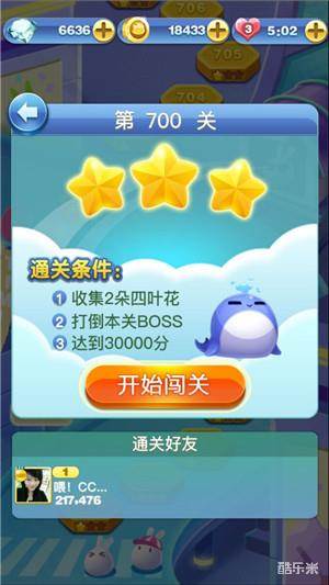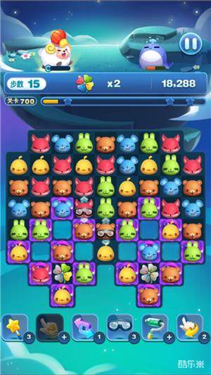 还有,四叶花旁边的四色棋子一开始的时候是四种不同颜色的棋子,在经历一次变换之后就会变成两色重复的棋子,所以我们一定要严格把握好棋子运行的规律,选择最恰当的时机来消除棋子。在上方位置制造出了特殊道具之后千万不要着急使用,而是看一下四叶花还缺哪种颜色的棋子,然后再进行消除。最快速的方法就是将目镜射线和旋风小丑结合使用,这样才能在最短的的步数之内将这四叶花收集成功。