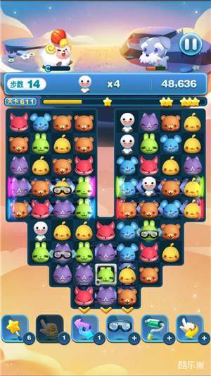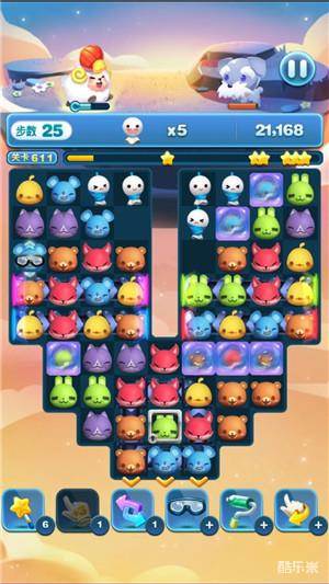 另外在底部的位置也有11个果冻的障碍,同样是需要我们去消除的,并且在倒数第二行,还有一个被框架困住的棋子。综上所述,要想轻松的闯关成功仅仅通过简单的棋子消除基本上是不可能的。因此我们在消除棋子的时候一定要选择棋子分布集中的地方,这样可以帮助我们制造出更多的目镜射线或者是旋风小丑这样的特殊道具来帮助。好在这里有一些传送带存在,所以当我们制造出了一个目镜射线之后不要立即用,可以将它和旋风小丑结合着使用,如果它们俩不在一起的话,也要想办法让它们凑在一起,只有这样才能产生最大化的效果。一旦晴天娃娃到达了底部,我们只需要移动它底部位置的棋子就可以将它们收集起来了。这个时候如果还剩下一个娃娃没有收集成功,一定要立刻使用您手上已有的道具来帮助。