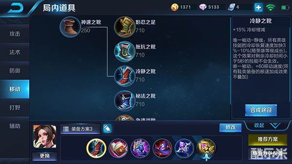 分析:本套出装不仅能提高不知火舞的续航及生存能力,而且还能让她拥有惊人的爆发伤害。第一件装备推荐大家做出冷静之靴,此装备一方面能提高不知火舞前期的机动性,确保她可以更加灵活,便于她游走支援或者逃生。另一方面此技能可以提高不知火舞的技能释放频率,使得她可以一直利用二技能输出及消耗敌人。随后玩家可以做出噬神之书来提高不知火舞的续航能力,此装备能增加她的法术伤害、冷却缩减、法术吸血及最大生命属性,多样的属性提升为不知火舞前期的发育保驾护航。