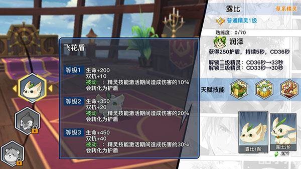 在7月20日测试版本中,每只可爱的精灵不仅和之前的版本一样,拥有一个专属于自己的主动技能,还获得了可以加强英雄属性和专属主动技能的三个天赋。