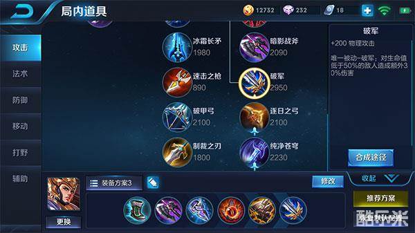 抵抗之靴+暗影战斧+冰痕之握+不死鸟之眼+不祥征兆+破军