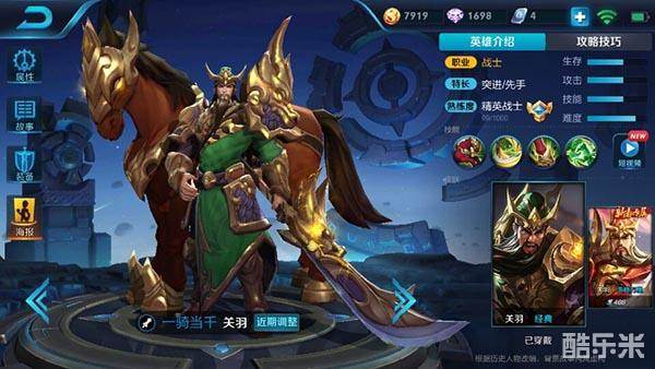 在王者荣耀里,战士的类型多种多样,有控制型的、爆发型的、持续输出型的等等,而相对来说,关羽就属于一个非常另类的战士,因为完全说不准他是什么类型的战士,如果一定要给他分一个类型的话,那么他就是一个支援型的战士,因为关羽的机动性非常强,是峡谷中移速较快的英雄之一,能够以极快的速度对队友展开支援,除了支援以外,关羽的控制能力和爆发力也非常强。虽然关羽各方面能力都很强,但是对操作的要求也比较高,如果不会使用关羽,关羽也是一个送人头非常厉害的英雄,那么关羽要怎么玩呢?一起来看看吧。