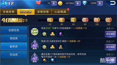 我们这里说的每日任务是指活跃度任务,玩家完成相应的任务后不但可以获得任务奖励,同时还可以领取活跃度宝箱。而活跃度任务有分为三种类型,第一种是竞技类,第二种是副本类,第三种是玩法类。