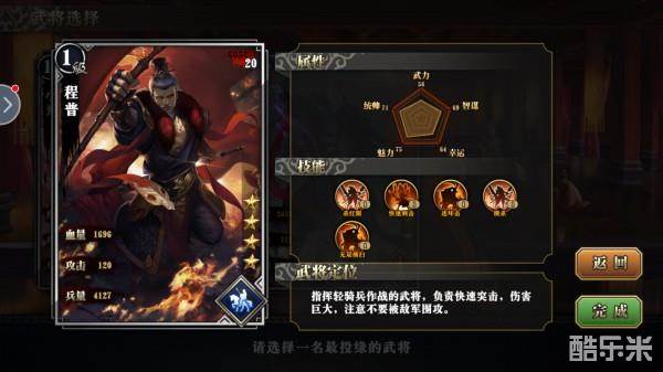 程普 兵种:轻骑 定位:辅助型骑兵,在前场进行对友军的协助