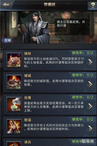 而想要计谋的效果发挥高效的作用,这也与计谋研究的武将有着密不可分的关系哦!烧掠计谋的研究底限是60智力,但是60智力的武将仅能使烧掠技能的效果持续10分钟,所以,想要对敌人造成更久的伤害,可以选择一位基础属性智力较高的武将,利用兵书对其智力属性进行进修,再配合智力型宝物,将武将培养到90智力以上,让烧掠技能的效果提升满级90分钟,从而就能影响目标几十万的资源收益,让敌方分分钟陷入崩溃之中!