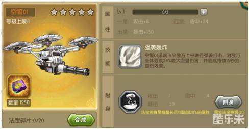 黑猫警长的专属法宝是“空警01”。“空警01”在释放技能时,会迅速飞到敌人的上空进行强袭打击,对敌人全体造成24%最大血量的伤害,并且会在15秒内造成持续的重伤效果。