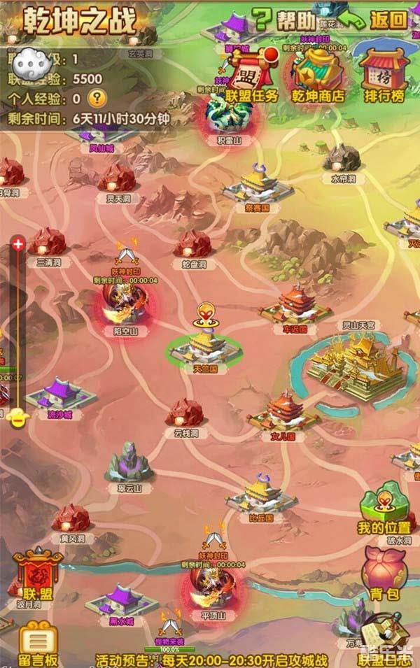 乾坤之战围绕三界大图上存在着的若干据点(联盟据点、小BOSS据点、大BOSS据点、城池据点)开展,少年们可在对应时间内参与攻城战与BOSS战,争夺金色资源碎片、元宝等海量游戏资源。