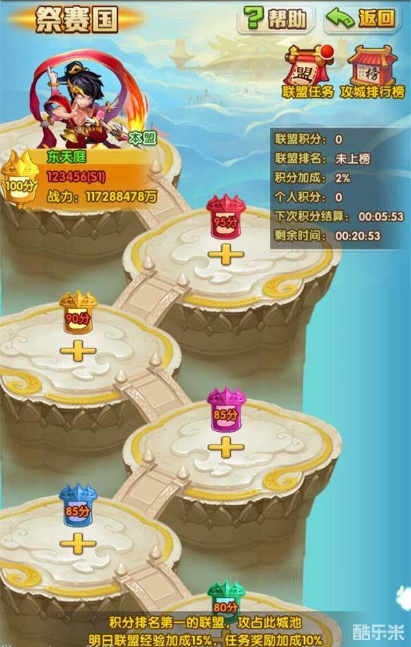 乾坤之战开启后,系统随机分配区服组成联盟,联盟可通过获取经验升级等级,成员则可享受到各类增益及属性加成。