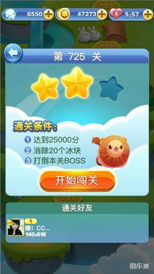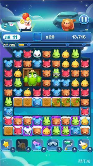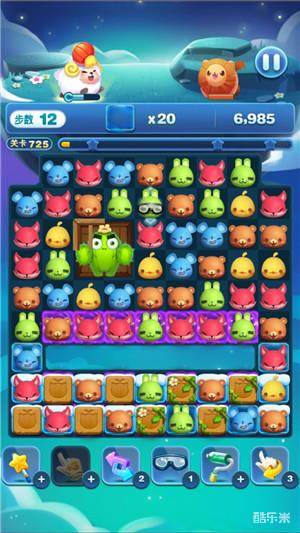 仙人掌把所有的木箱障碍都清除之后,我们可以看到这些冰块全部都是双层的,也就是说需要我们消除两次才可以,除此之外我们还可以看到这些冰块有一半是由虫洞漩涡所构成的,每当我们消除一次棋子的时候就会有一半的冰块棋子随着虫洞漩涡被传送到倒数第四排的位置中去,所以我们在消除的时候一定要选择棋子全部都集中在下方位置。另外在消除的时候我们一定要在上方区域棋子最为集中的地方多制造出像目镜射线和白色的暴走幽灵这样的特殊道具出来,然后再慢慢的将它们移到下方位置的虫洞漩涡里,利用它们的力量就能够帮我们在最短的时间内打破这些冰块。
