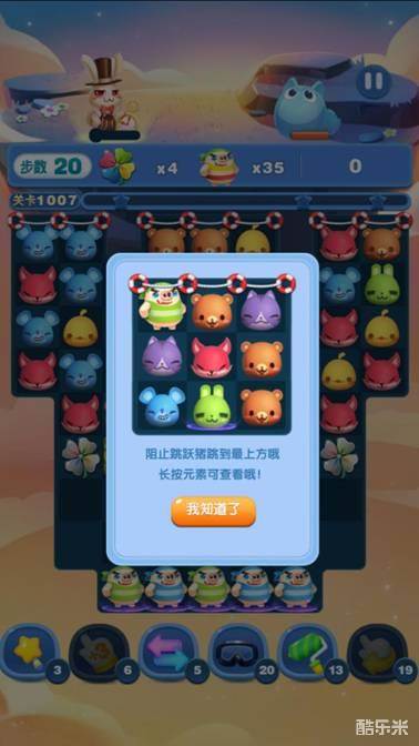 虽然水手猪是一个新元素,但是只要能够阻止它跳跃,它也就发挥不了什么作用了。最后再次提醒各位小伙伴们,在这一关中一定要注意观察水手猪的跳跃,千万不要水手猪登顶了,还没消除。不然这一关就已经输了哦。