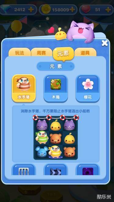 水手猪能够在每一步结束之后往上跳一步,如果玩家让水手猪上跳到棋盘顶端,那么很遗憾,游戏结束。所以,我们需要通过消除水手猪,才能解决最本质的问题。想要快速了解水手猪的特点,大家还可以在“游戏手册”中查看元素详情哦。