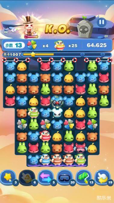 既然已经明白了水手猪的特点,那么消除起来就会简单很多了。首先观察好水手猪上跳的位置,四周是否构成消除条件,若不能则尽量消除水手猪下方的棋子,避免其登顶;同时,玩家更需要注意同色棋子的位置,利用水手猪的上跳能力,尽可能制造目镜射线、旋风小丑等特殊棋子,帮助过关。(PS:特殊棋子的大面积消除,也会将水手猪消灭掉哦。)
