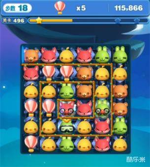 3、热气球经过左侧最外围的一列时,会随传送带一步步往上。如果不小心消除掉热气球下方的棋子,热气球就会往下掉,反而加大了热气球到达收集点的路程。所以当热气球在这里时,一定要格外小心,才能通过本关。