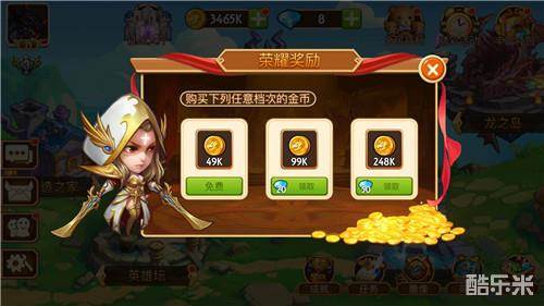 点击主界面上方的金币“+”号,一次免费,一次需要花费20钻石购买。