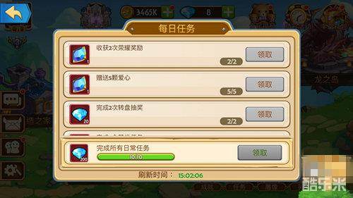 日常任务能够获得游戏内主要的消耗品:钻石、斗技场门票以及许愿水晶。并且完成所有任务后会有200钻石的奖励,可以说是每天必做,下面就让小编为大家介绍一下游戏中的日常任务。