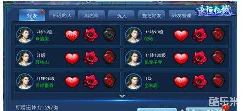 在与你的好友一同斩妖除魔为天下苍生力保平安的同时,玩家间可以增加亲密度。除了组队战斗外,还可以在当前界面里赠其鲜花,能令全服玩家都能体会到你与你好友之间的深情厚谊的玫瑰花雨,更能让所有人都来围观你们之间的亲密。