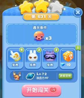 1、本关的主要任务是消除三只章鱼,章鱼会向面朝方向吐出泡泡,被泡泡包围的棋子无法移动,这非常的影响我们消除棋子来攻击章鱼。所以我们开局尽量在章鱼周围寻找机会,就近攻击章鱼。只要有一只章鱼或者泡泡受到就近攻击,都会让章鱼下一回合停止吐泡泡。