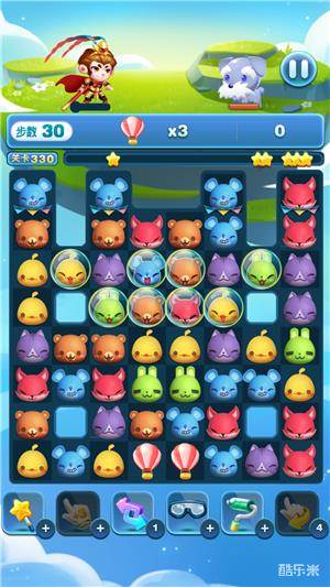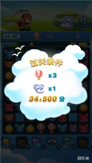 开局之后,玩家先将带有气泡的小动物全部清理掉,随着这些气泡小动物的消除,水面也会逐渐的上升,当水面到达最上方之后,我们就可以专心的去运送热气球了。在消除气泡棋子的时候,大家也可以对热气球进行运送,这样做可以让步数最大化的利用。