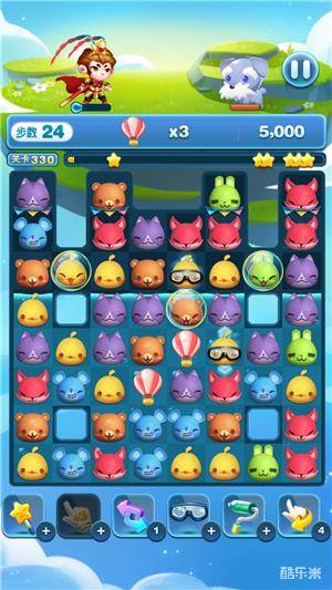 当收集进行到后期的时候,我们往往会因为个别的棋子无法消除而不能收集到所有的热气球,这个时候大家只能另想办法了,特效是大家唯一的选择。观察当前关卡的棋子排布,制造出特效,然后用特效来完成最后的收集。不过想要生成特效,还是需要一点点运气的。
