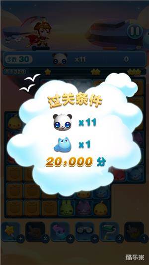 熊猫阿宝一向是棋子们非常喜爱的玩伴,对于解救熊猫阿宝,大家一定要不遗余力。本关的通关难度不是很大,只要按照正常的消除顺序,有很大的把握通过关卡,不过想要获得高分,就没有那么容易了,毕竟关卡的空间以及棋子的种类,都对特效的合成起到了很大的限制作用。